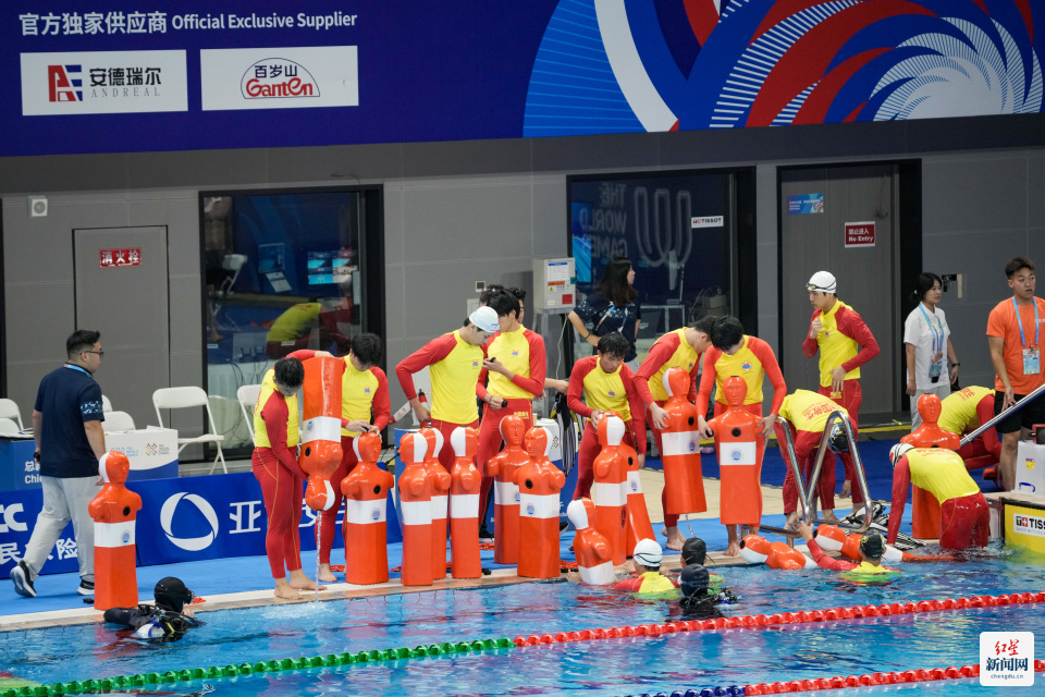 8日下午,在成都体育学院三岔湖校区,成都世运会泳池救生比赛举行。在世界运动会中,救生比赛需使用40-45公斤的灌水假人,进行水下打捞、拖带救援(保持假人头部出水),并设置障碍游泳等实战环节。与游泳项目相比,救生比赛的泳池更深(2.2-3米),部分项目需脚蹼/浮标。而游泳仅为竞速,无负重和救援要求。救生项目直接训练救生员实战能力,兼具竞技性与实用性。